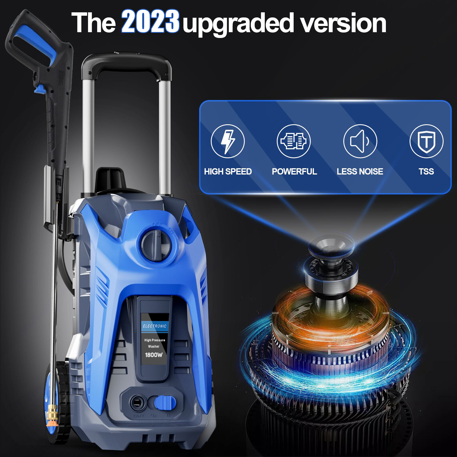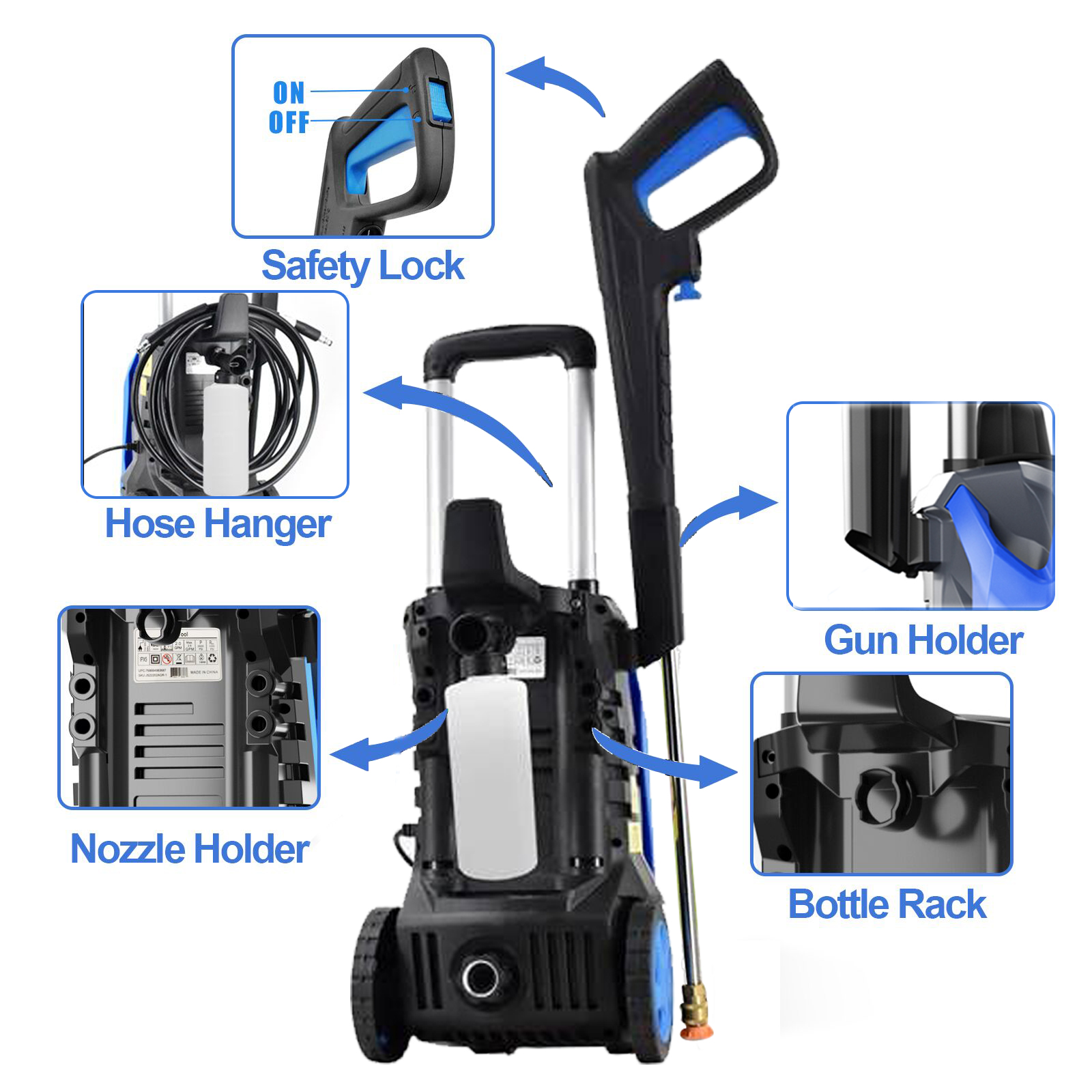 Electric Pressure Washer with 25FT Hose, 4 Quick Connect Nozzles and 16.9 oz Soap Tank Blue